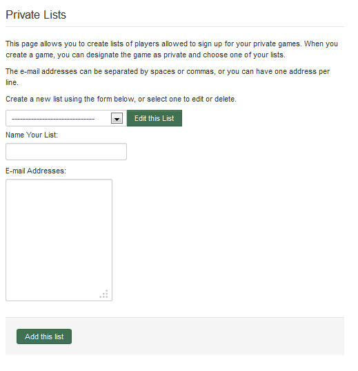 3. List your players by email address in the text box. Email addresses may be on separate lines or you can choose to separate them with spaces or commas.